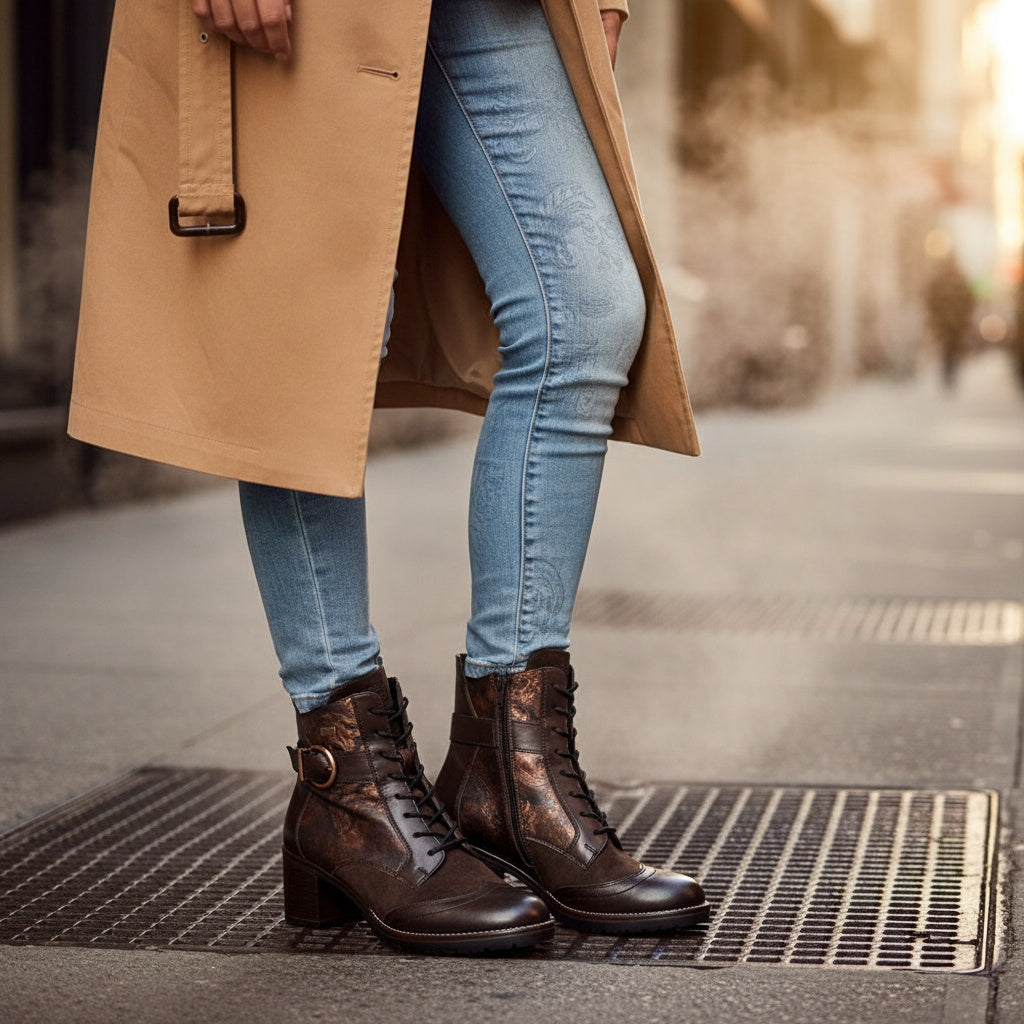 Strut your stuff in these stunning Ladies Remonte Boots! With a medium block heel and eye-catching leather/suede/printed leather combo uppers, you'll be sure to turn heads. Stay dry with water repellent uppers, while adding a touch of sass with a patent strap and silver buckle detail. Zip up or lace up - the choice is yours!