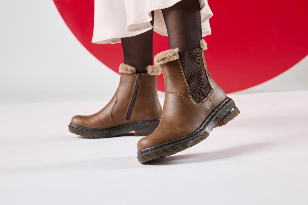 Ladies Rieker Boots Chunky Chelsea Fur Trim Zip 78250-22
