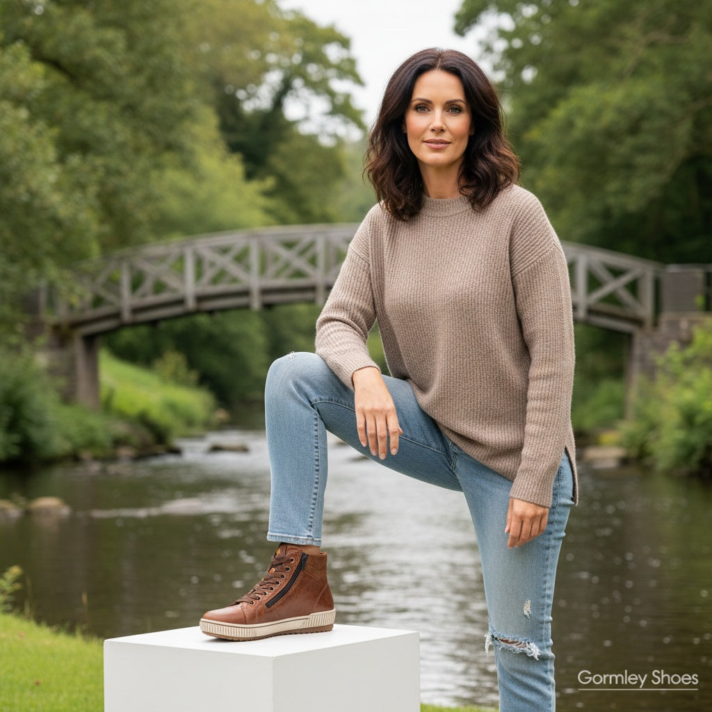 Remonte Ladies Brown Leather Lace Up Ankle Boots Water Repellent D0772-22