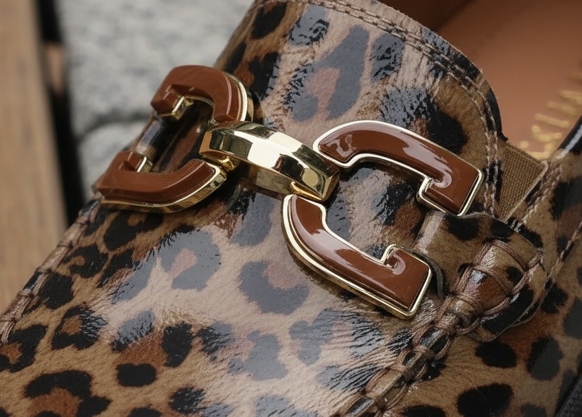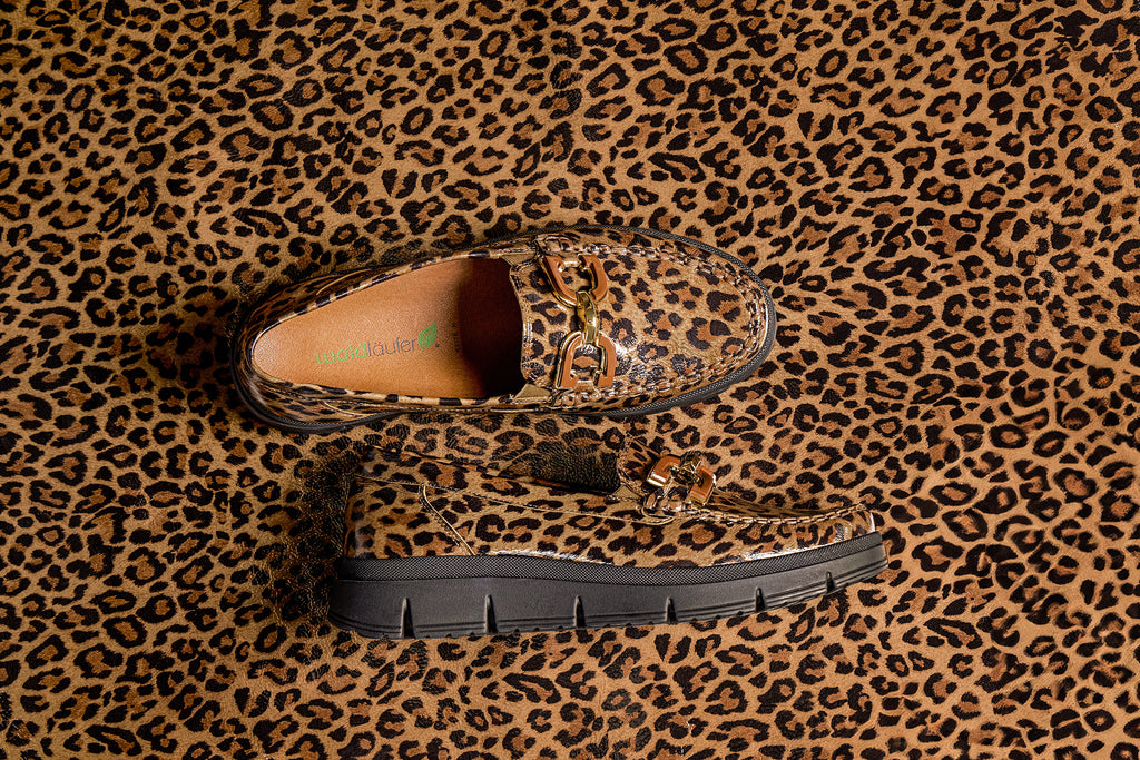 Elevate your shoe game with Waldlaufer Loafers Patent Leather Khaki! Soft animal print leather paired with a fun oversized buckle in brown and gold. Enjoy a comfortable fit with removable leather insoles, perfect for half sizes. Take a walk on the wild side with these quirky loafers.